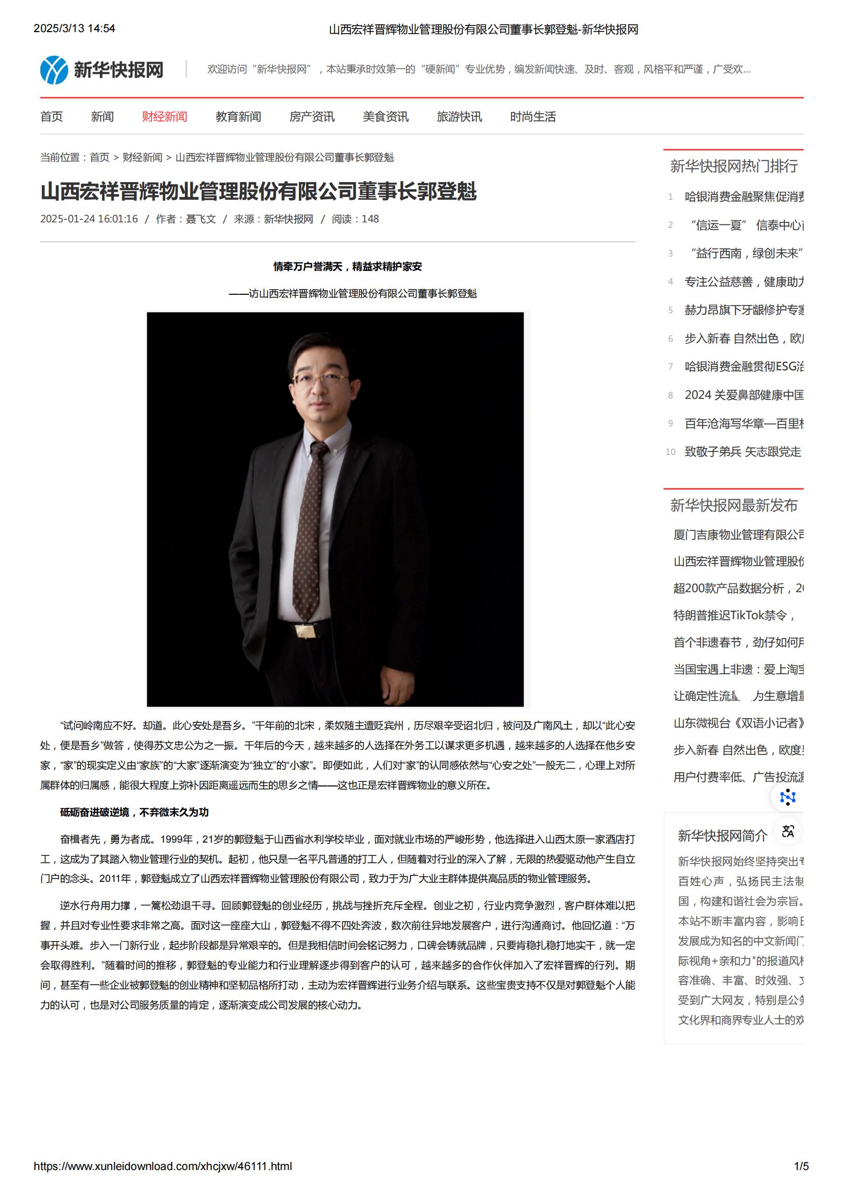 新華快報(bào)網(wǎng)——山西宏祥晉輝物業(yè)管理股份有限公司董事長郭登魁