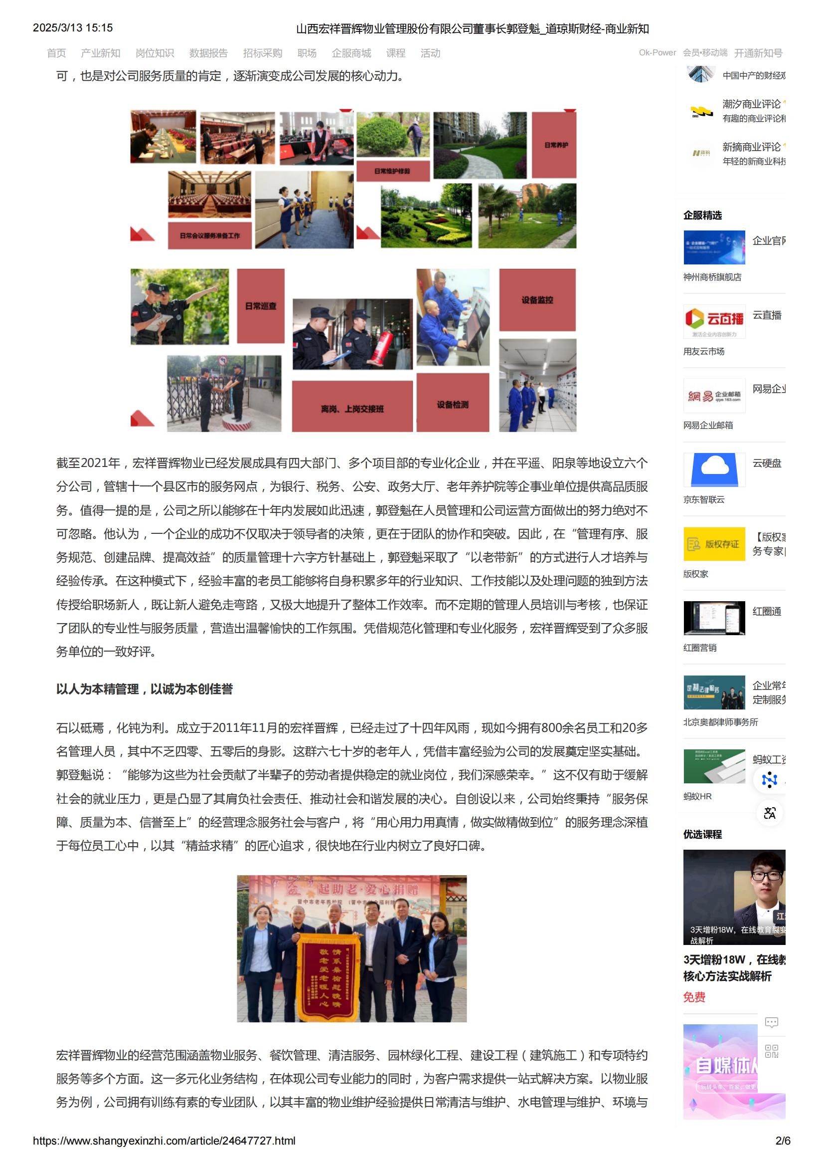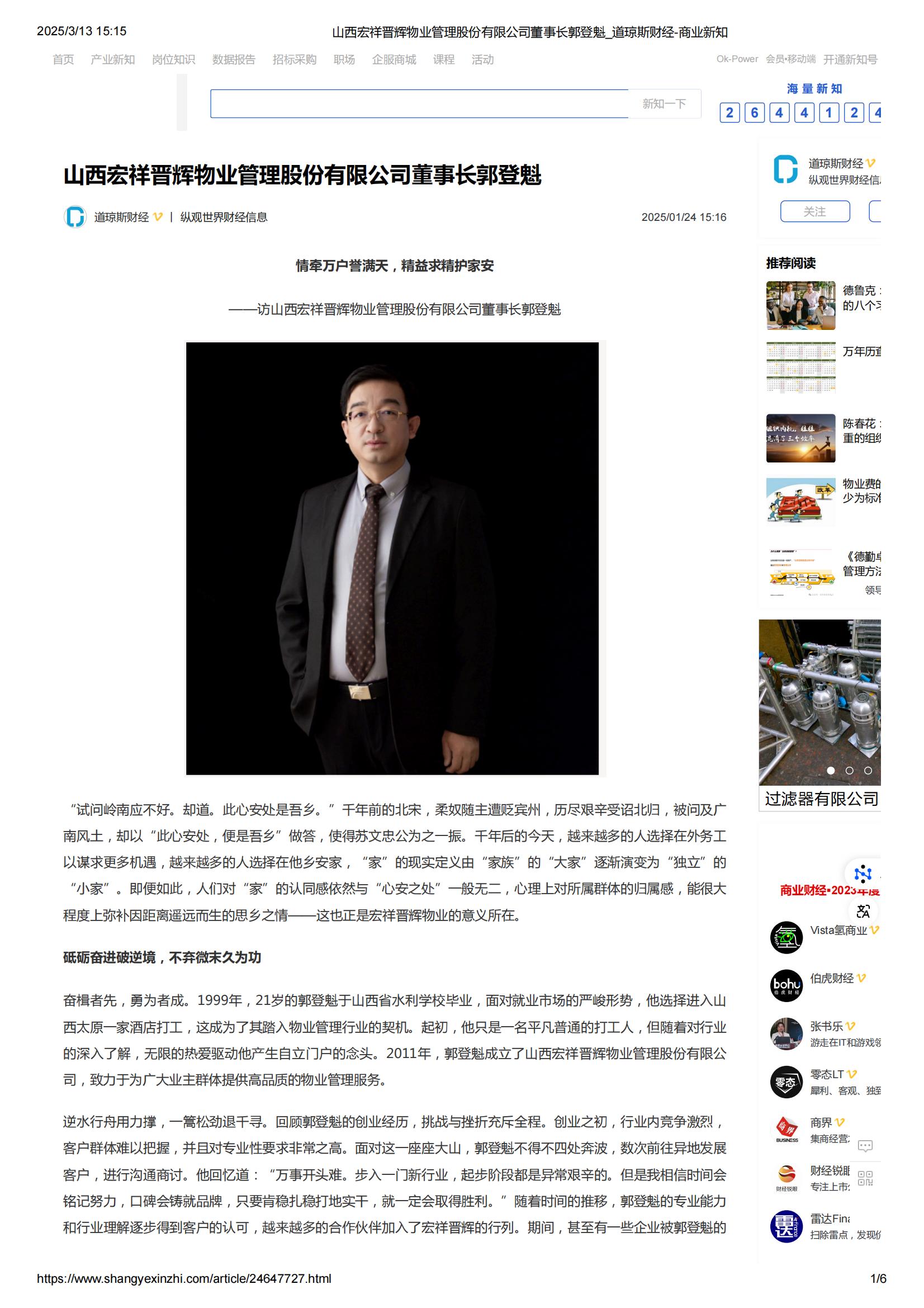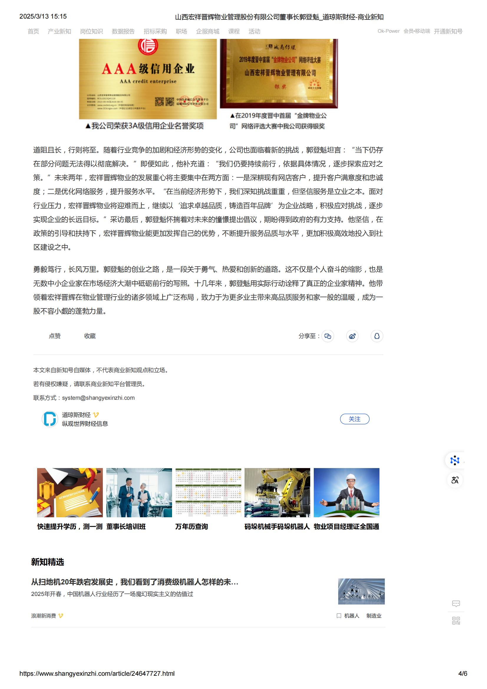 商業(yè)新知——山西宏祥晉輝物業(yè)管理股份有限公司董事長郭登魁