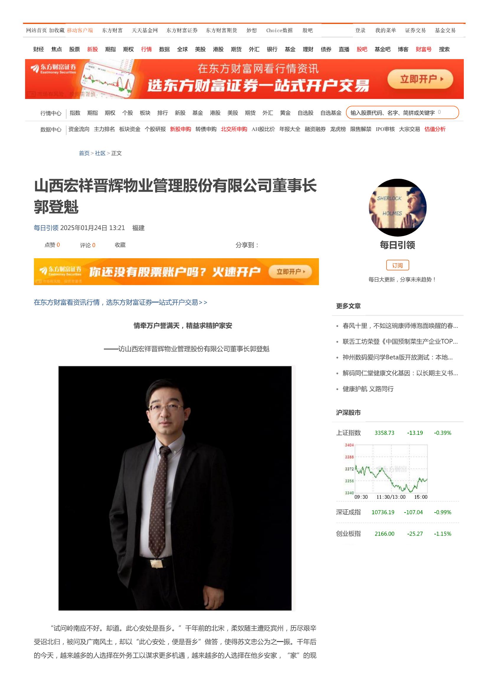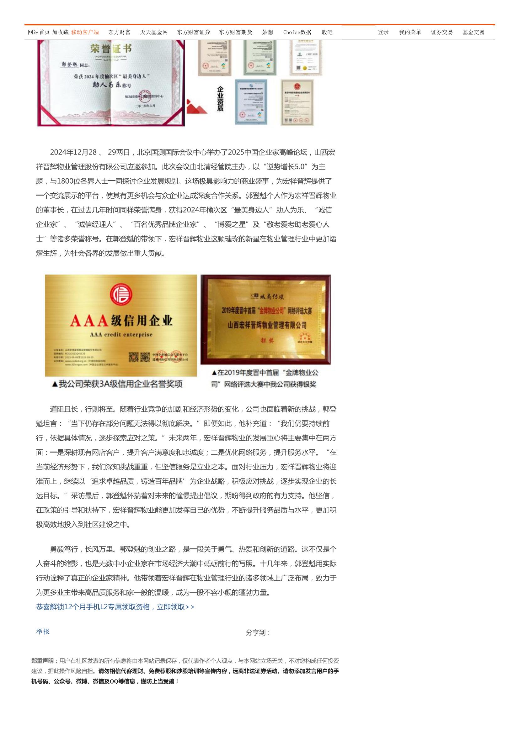 東方財(cái)富網(wǎng)——山西宏祥晉輝物業(yè)管理股份有限公司董事長(zhǎng)郭登魁